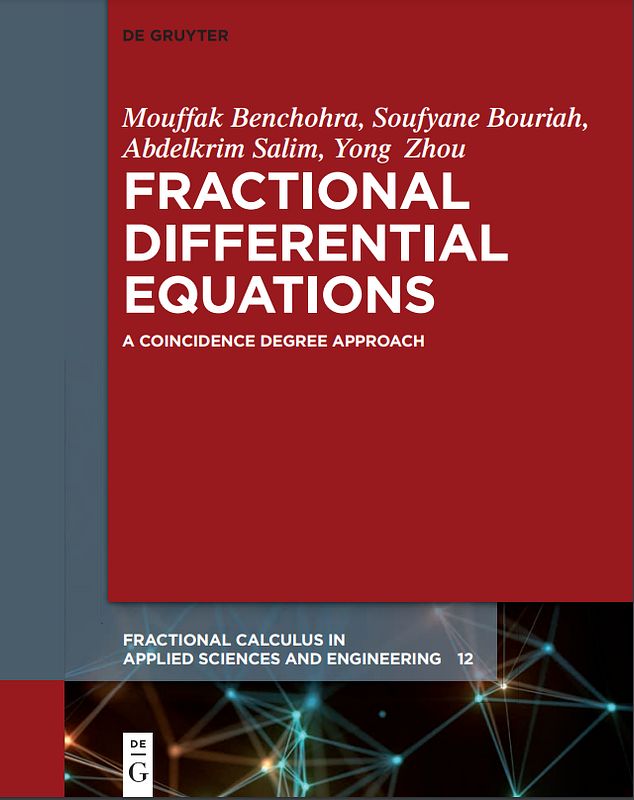 Dr. Mouffak Benchohra is a Full Professor in the Department of Mathematics, Djillali Liabes University of Sidi Bel Abbes. Dr. Benchohra received his MSc in Nonlinear Analysis from Tlemcen University, Algeria, and his PhD in Mathematics from Djillali Liabes University, Sidi Bel Abbes, Algeria. His research fields include fractional differential equations, evolution equations and inclusions, control theory and applications, and other topics in applied mathematics. Dr. Benchohra is the author of Topics in Fractional Differential Equations, Springer; Advanced Functional Evolution Equations and Inclusions, Springer; Fractional Differential Equations and Inclusions: Classical and Advanced Topics, World Scientific; and Implicit Fractional Differential and Integral Equations, DeGruyter.